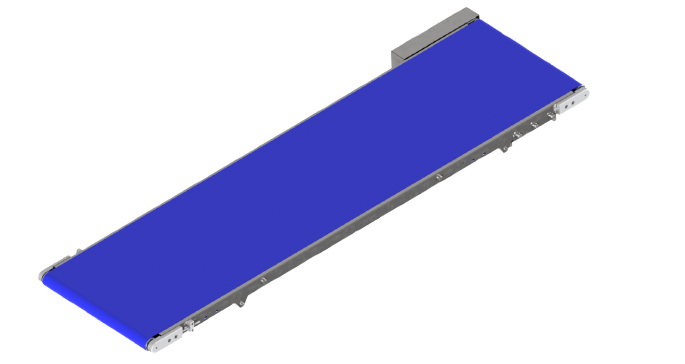 Transportador recto de banda accionado por motorreductor 400v AC estación motriz en cabeza.